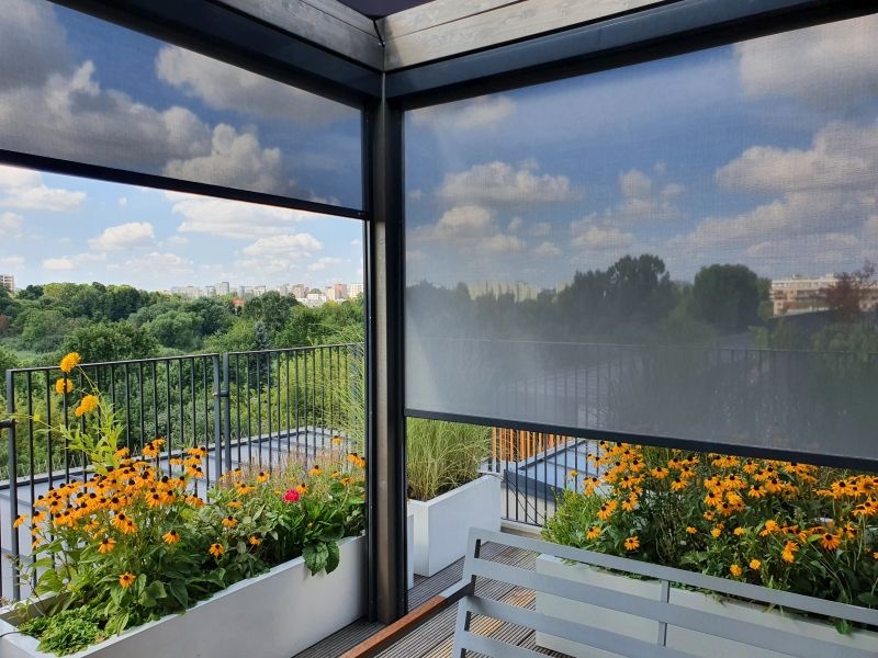 Pergola z punktowym oświetleniem led oraz zewnętrzna roleta screen - realizacja w okolicy Piaseczna